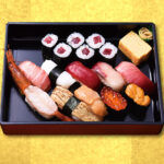 最上級の極上一人前「羽衣」は、天然ミナミ鮪を大トロ、中トロ、赤身と一度に楽しめるほか、見た目も豪華な頭付きの生赤海老、香ばしく炙った天然真穴子が丸ごと一本入った完璧な盛込みです。大切なお客様のおもてな…