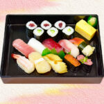 【内容】 中トロ・いか・天然みなみ鮪赤身・はまち 北寄貝・甘海老・ほたて・一本穴子 いくら軍艦・ねぎとろ軍艦・鉄火巻 かっぱ巻・厚焼き玉子